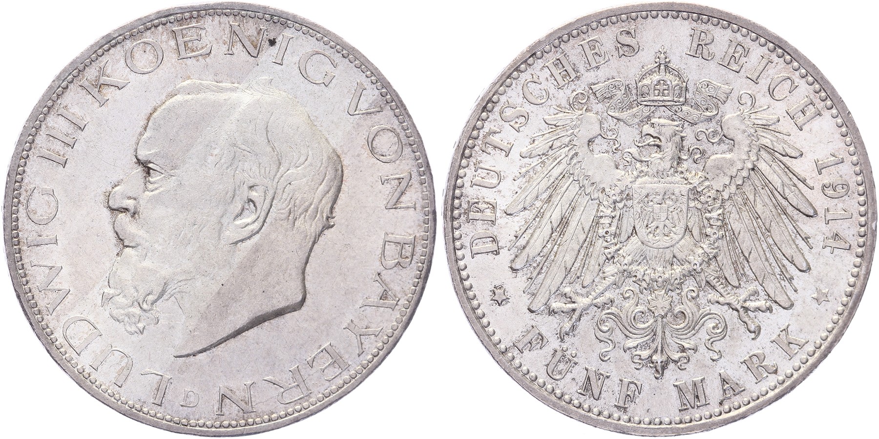 5 Mark 1914. AKS 209; KM 1007. Üblicher Farbstrich. Vorzüglich / Stempelglanz.