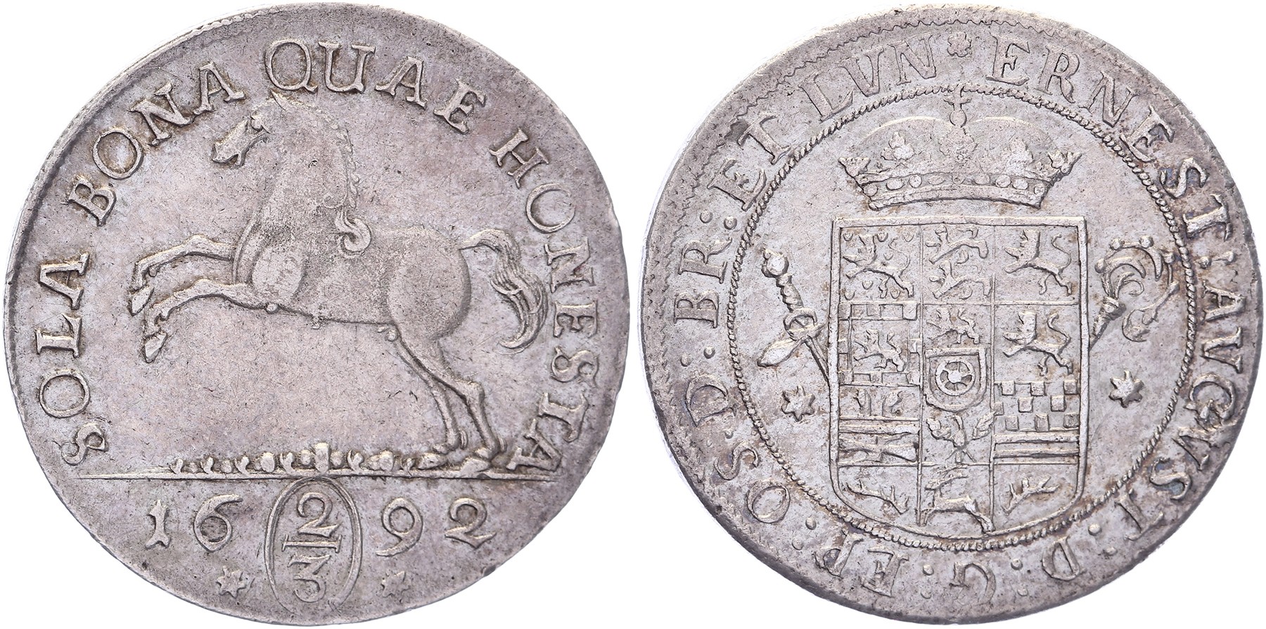 2/3 Taler 1692 **. Welter 1980; Dav. 410; KM 347. Sehr schön.