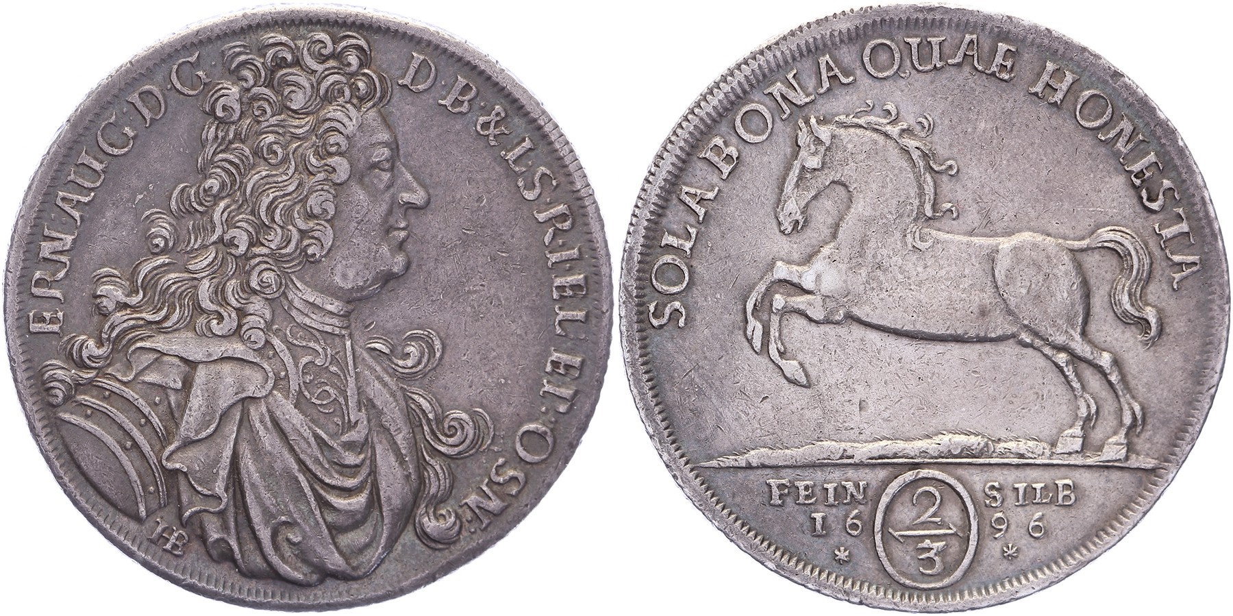 2/3 Taler 1696 HB. Welter 1969; Dav. 397; KM ? (381). Sehr schön / Vorzüglich.