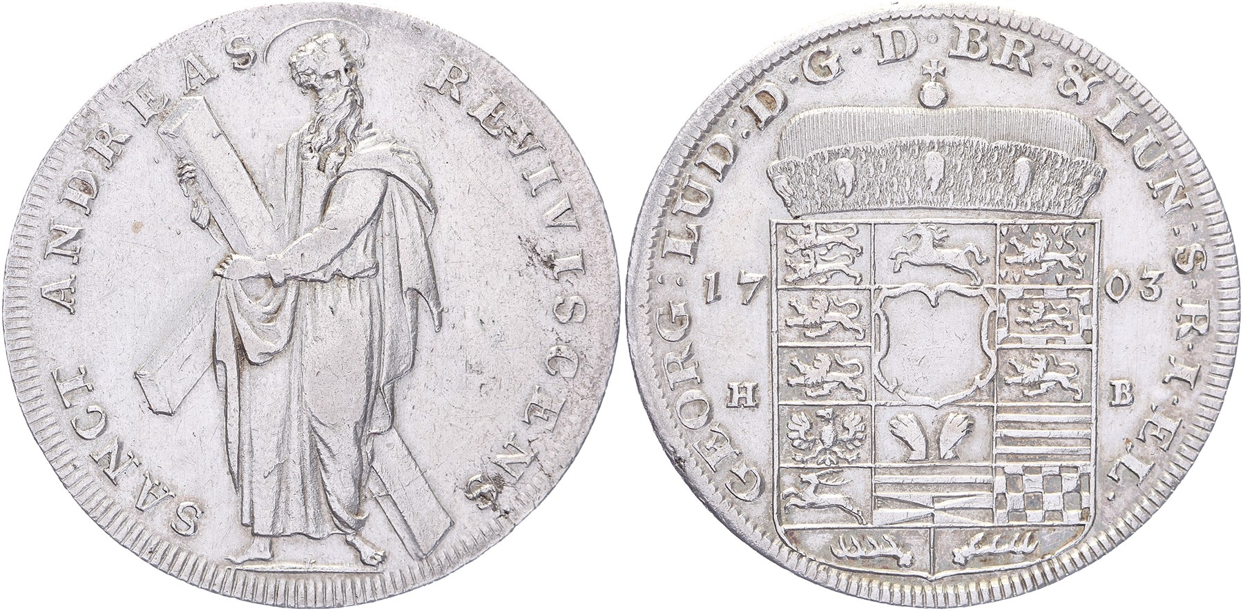 Taler 1703 HB. Welter 2136; Schön 11; KM 20. Sehr schön / Vorzüglich.
