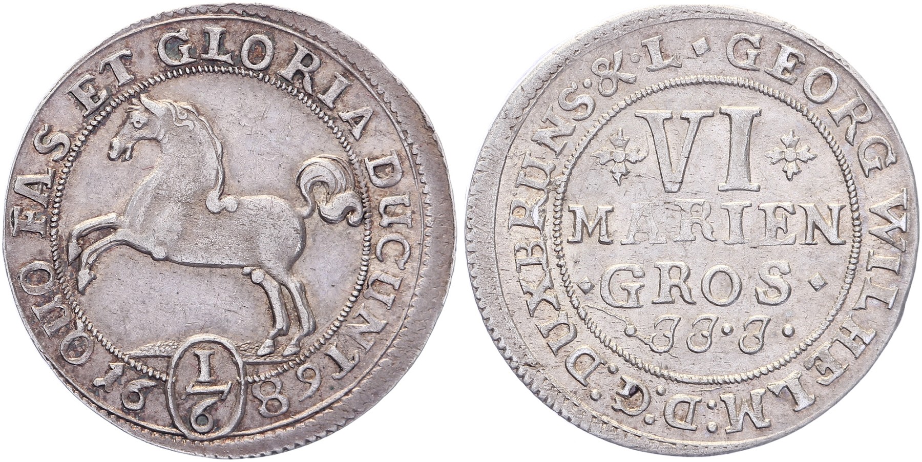 VI Mariengroschen 1689. Welter 1609; KM 327. Fast vorzüglich.