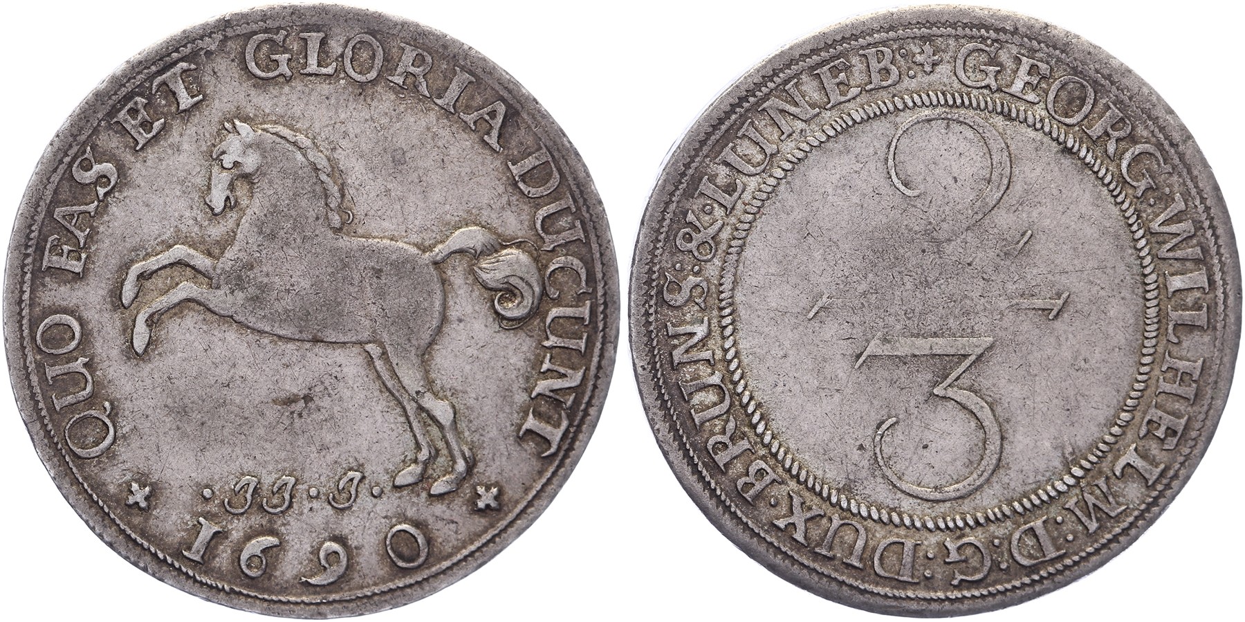 2/3 Taler 1690. Welter 1590; Dav. 367; KM 331. Schön / Sehr schön.