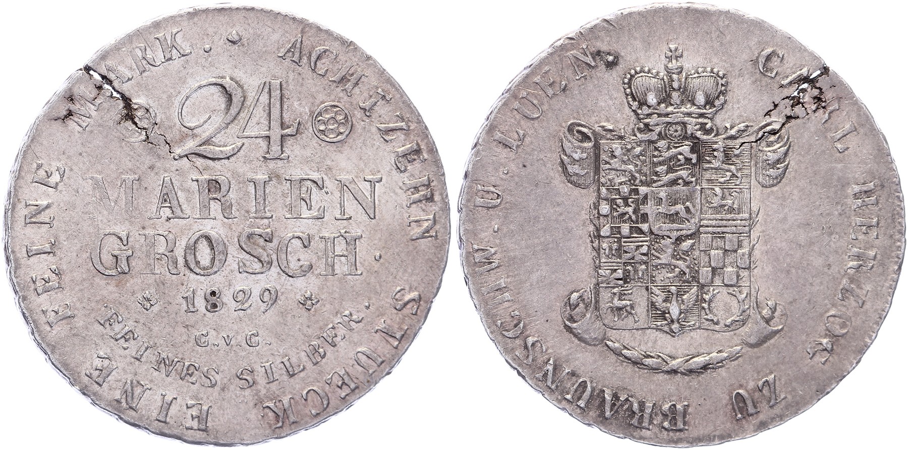 24 Mariengroschen 1829. AKS 55; KM 1109. Schrötlingsfehler, sonst vorzüglich.