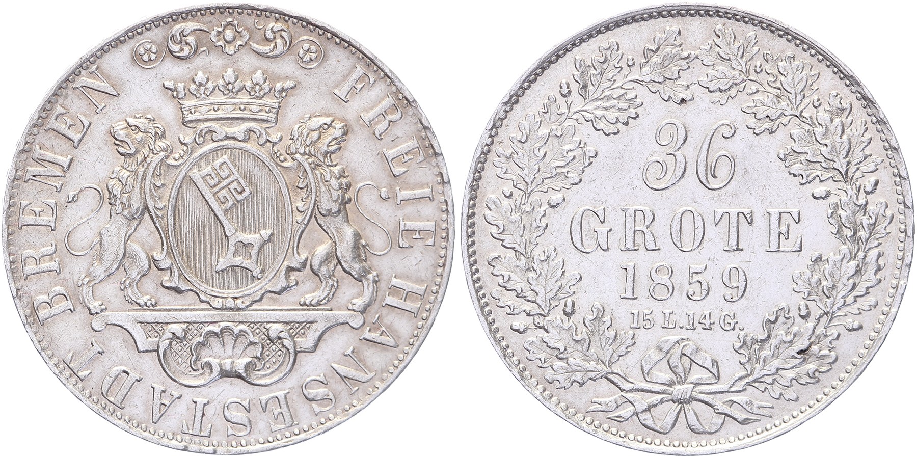 36 Grote 1859. KM 233; AKS 1. Randunebenheiten. Sehr schön / Vorzüglich.