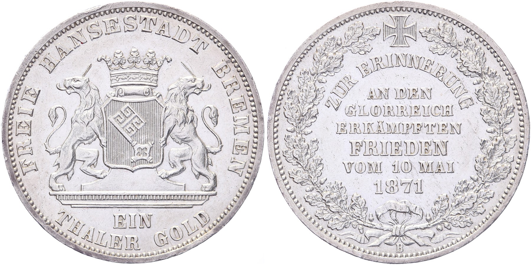 Gedenktaler 1871 Frieden. KM 249; AKS 17. Vorzüglich.