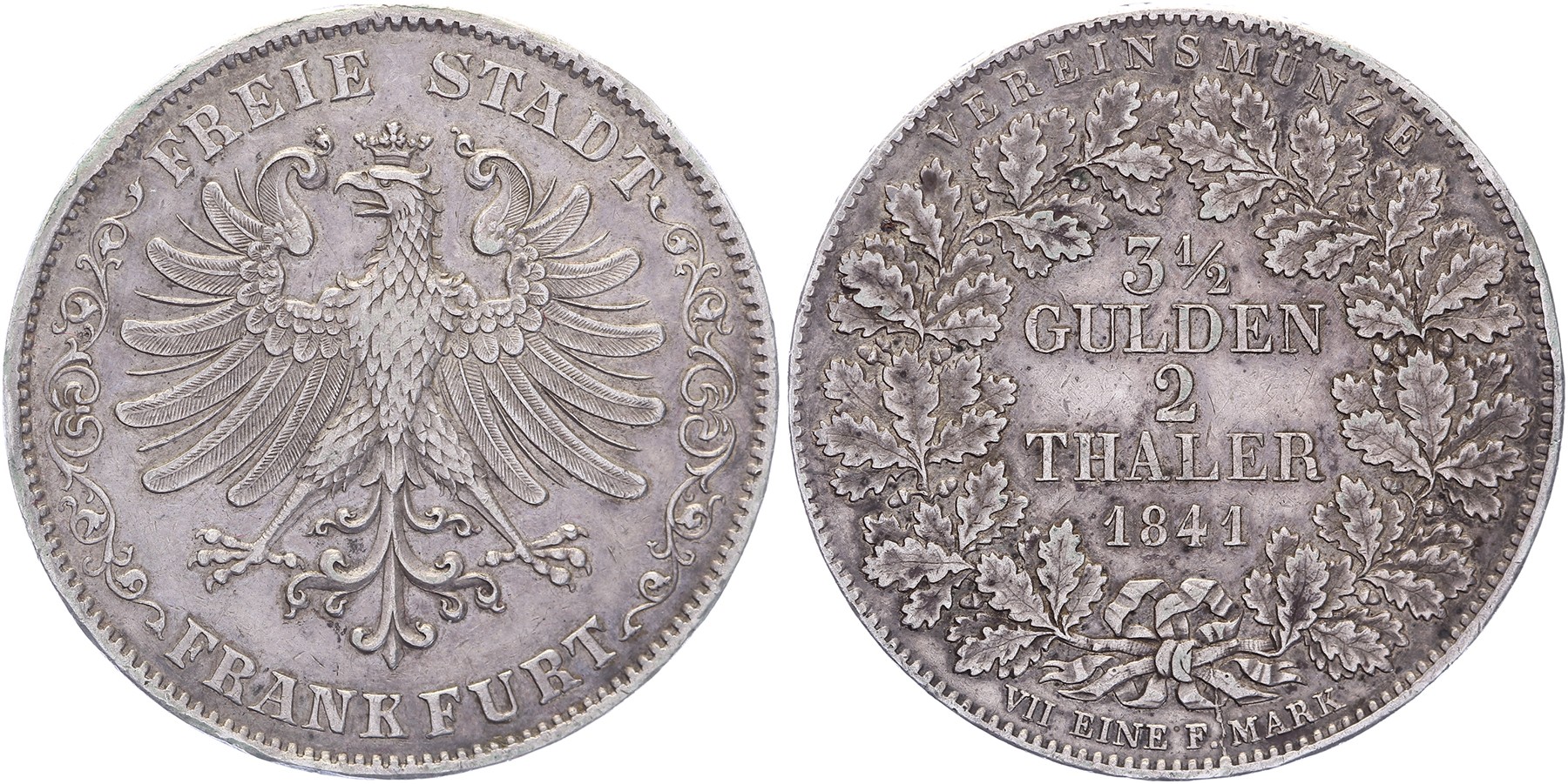 Doppeltaler (3½ Gulden) 1841. AKS 2; KM 329. Sehr schön.
