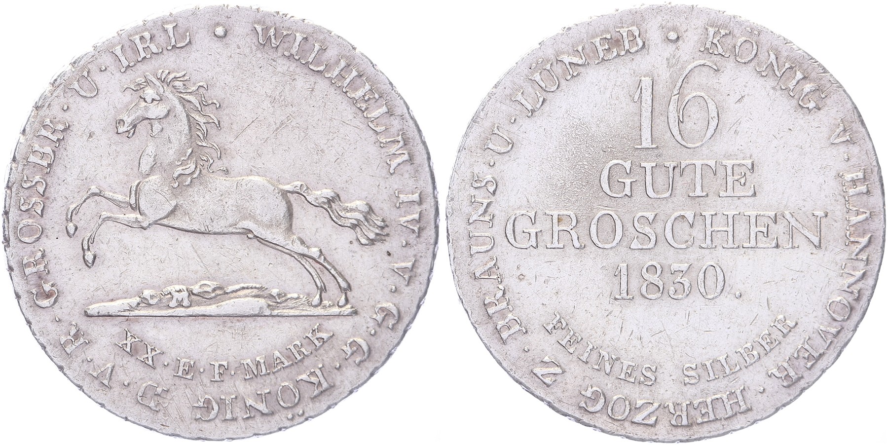 16 Gute Groschen 1830 (M). AKS 66; KM 145.1. Sehr schön / Vorzüglich.