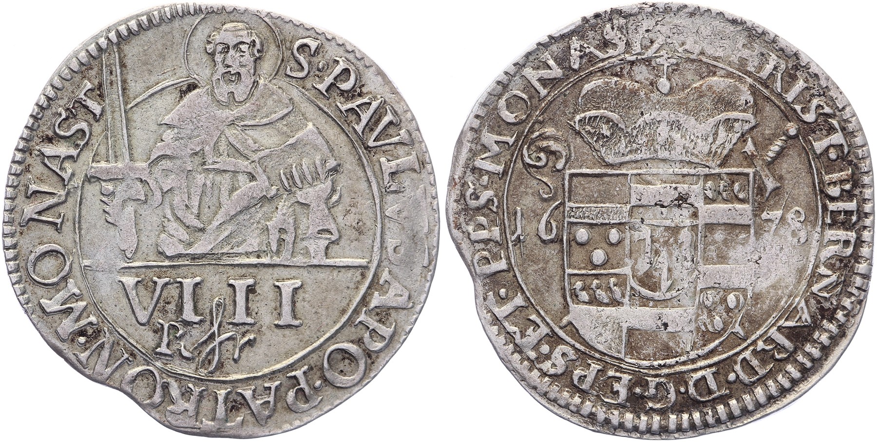 1/8 Taler (Blamüser) 1678. KM 90. Randunebenheit, sonst sehr schön.