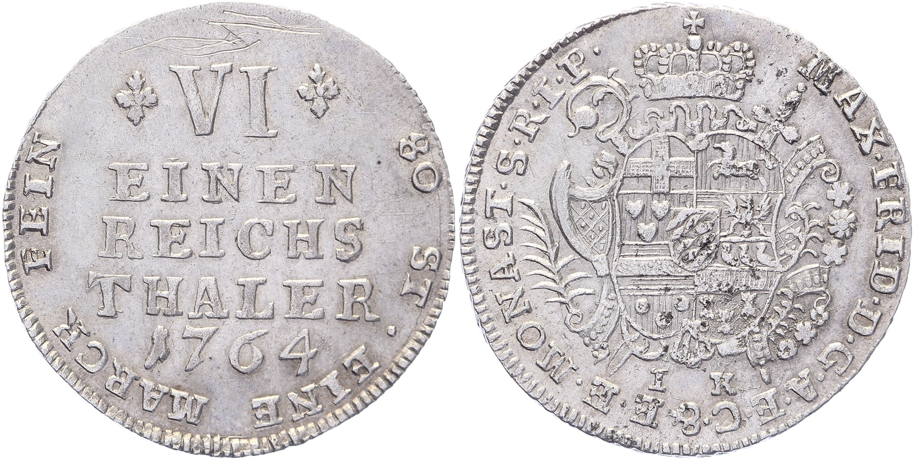1/6 Taler 1764. Schön 52; KM 202. Leichte Kratzer Ruckseite. Sehr schön / Vorzüglich.