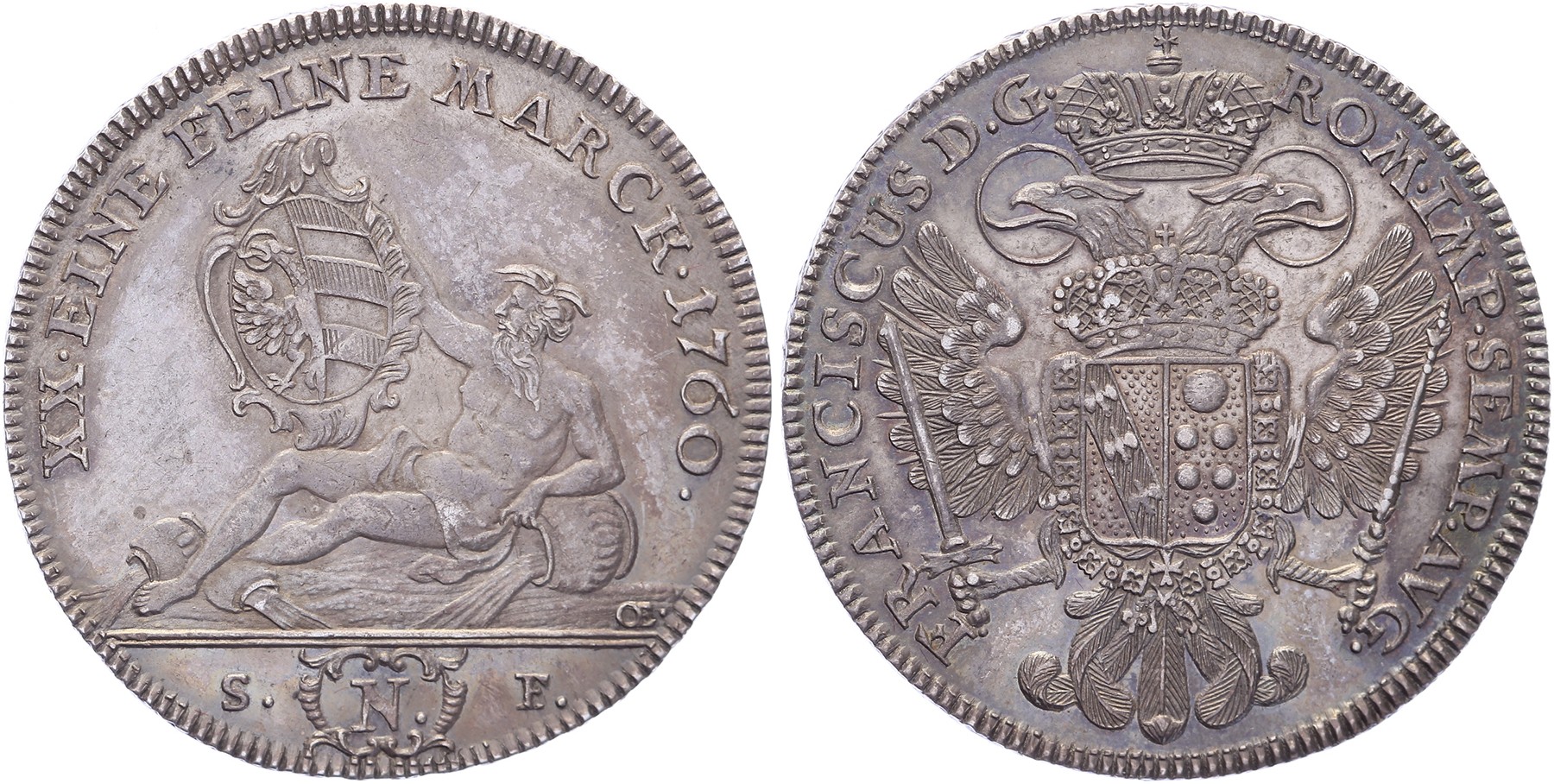 ½ Konventionstaler 1760. Schön 49; KM 332. Vorzüglich/Stempelglanz.Ankauf Dr. Busso Peus Nachf., Auktion 282/283, Oktober 1973, Lot 4396.