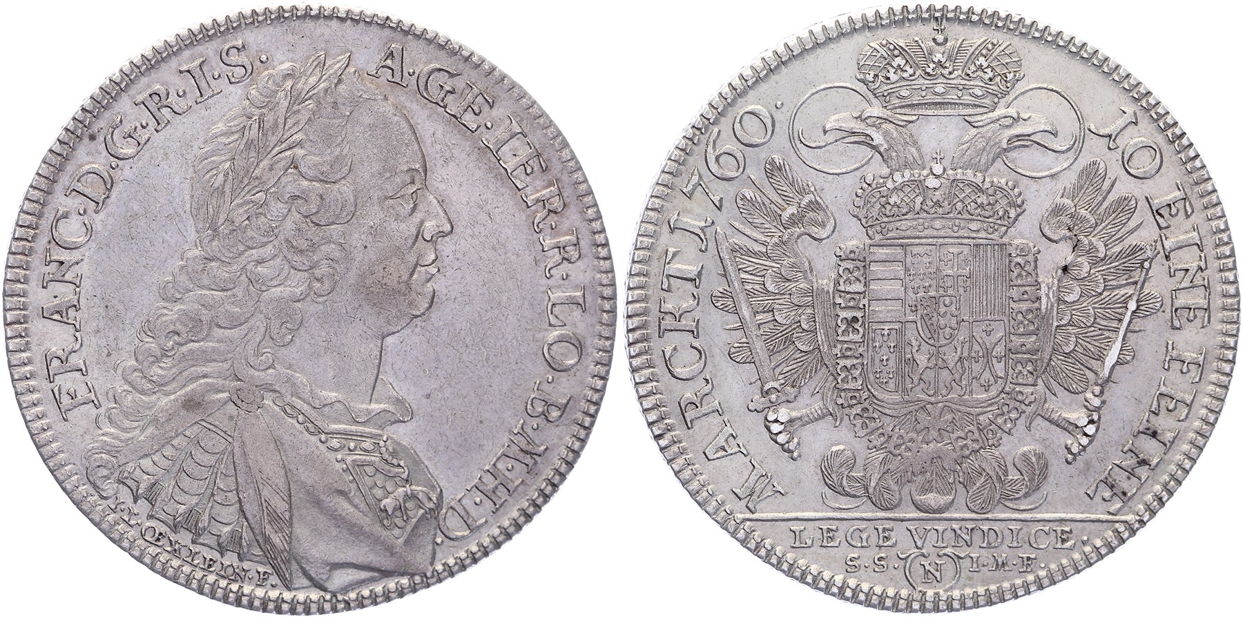 Konventionstaler 1760. Dav. 2486; Slg. Erl. 742; KM 333. Sehr schön / Vorzüglich.Ankauf Jean Elsen, Auktion 82, 2004, Lot 1751.