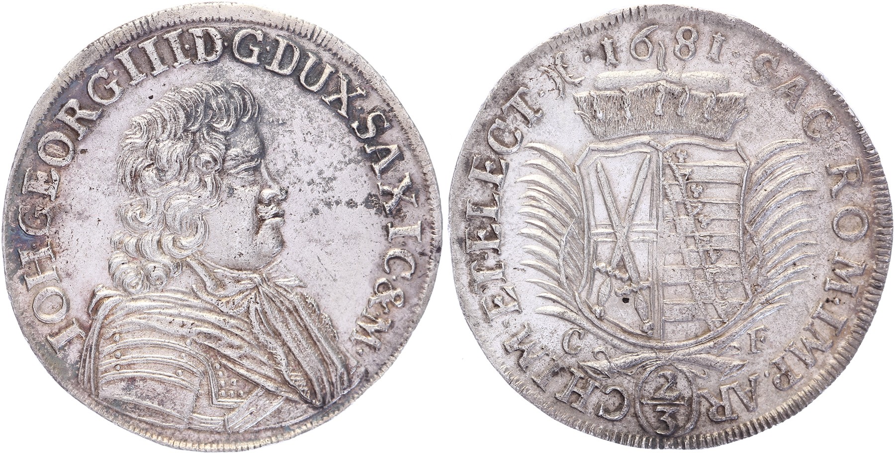2/3 Taler 1681. Dav. 810; KM 571. Schrötlingsfehler, sonst vorzüglich.