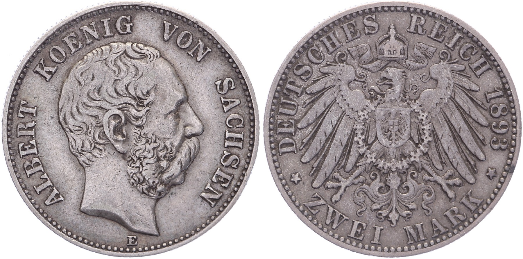 2 Mark 1893. AKS 170; KM 1245. Sehr schön.