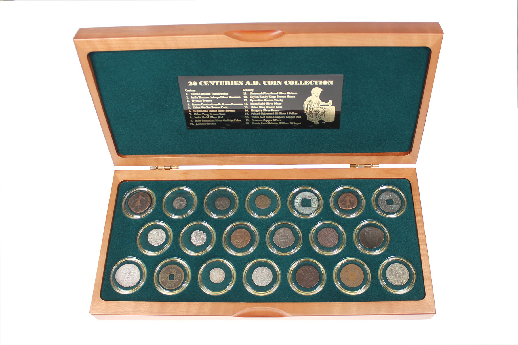 Luxe kist met 20 centuries AD coin collection. Eenvoudig maar leuk.