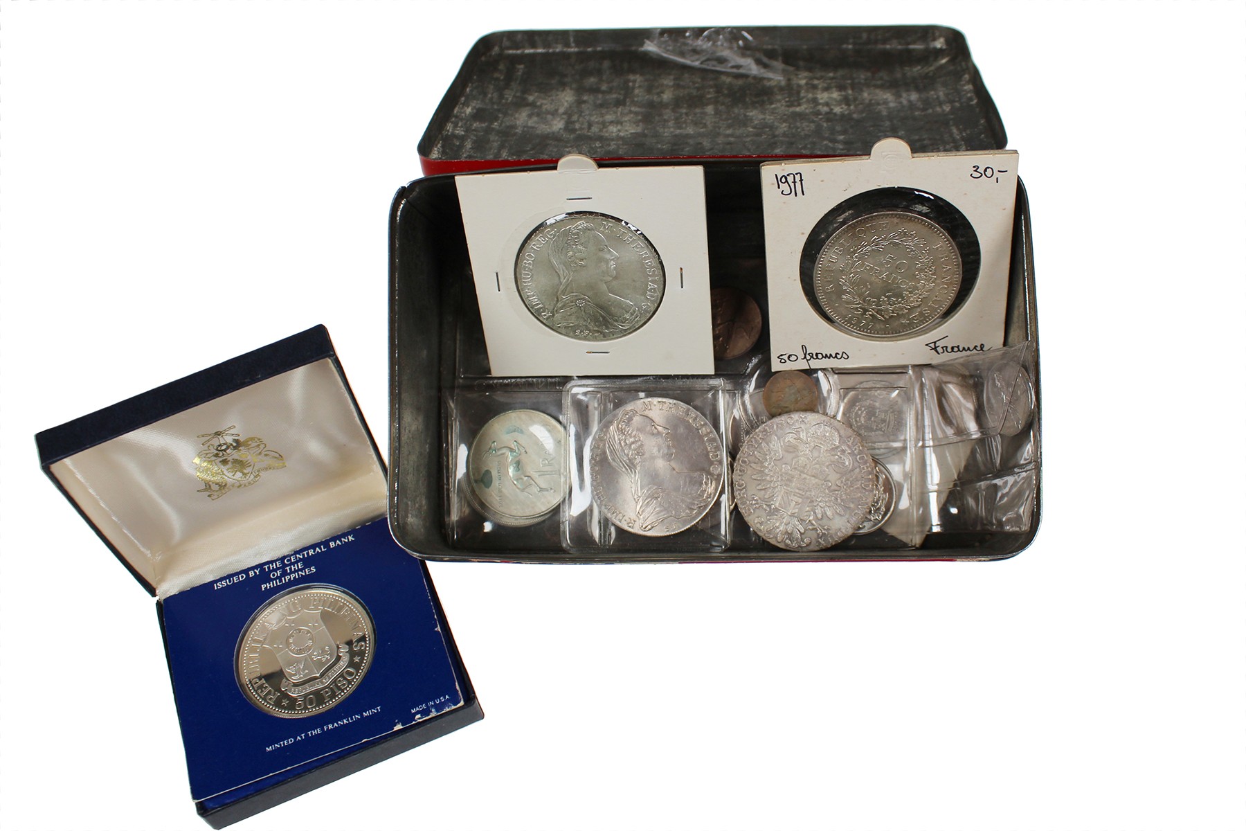 Blikje divers wereld o.a. 5x Maria Theresia Thaler.