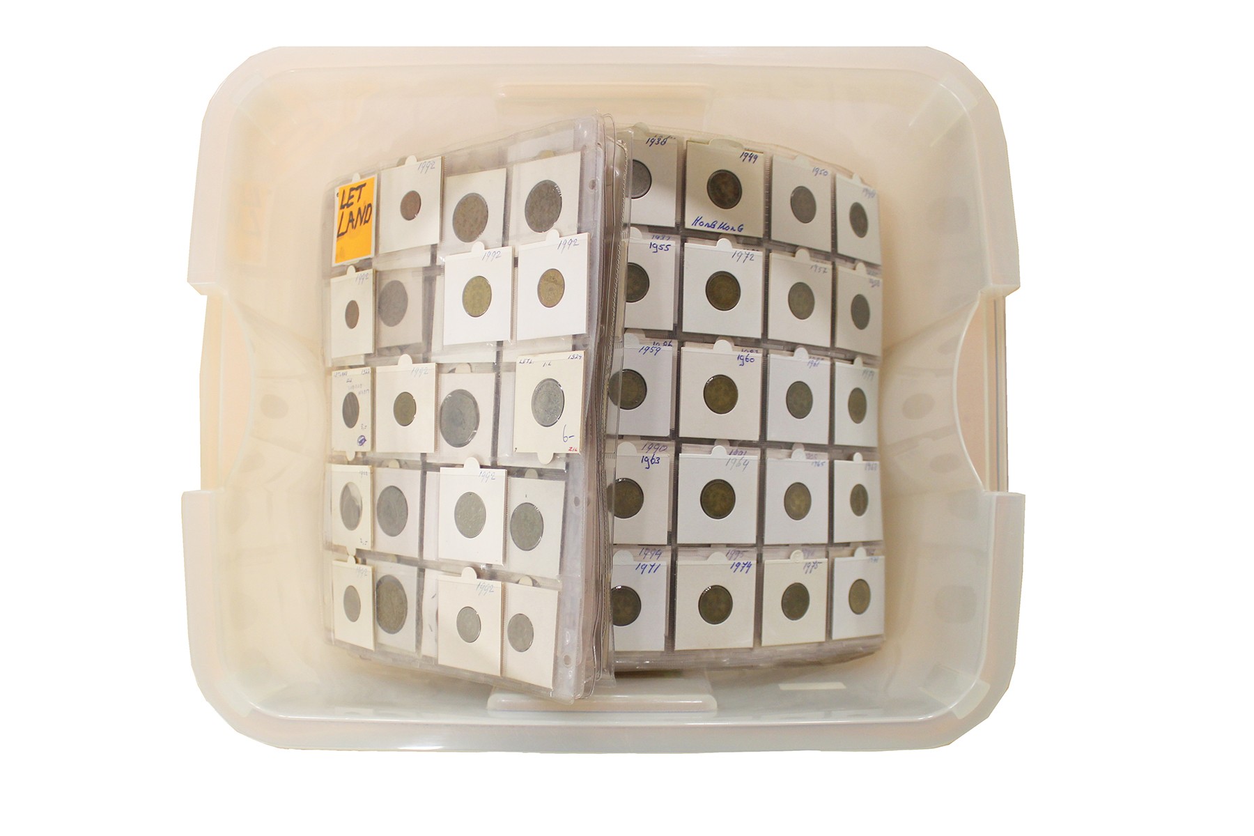 Curver-bak met ruim 1750 stuks eenvoudig wereld. Kilogoed in een munthouder.