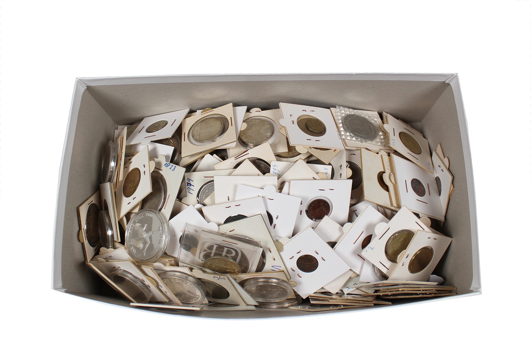 Schoenendoos met restcollectie wereld onuitgezocht. Ook zilver.