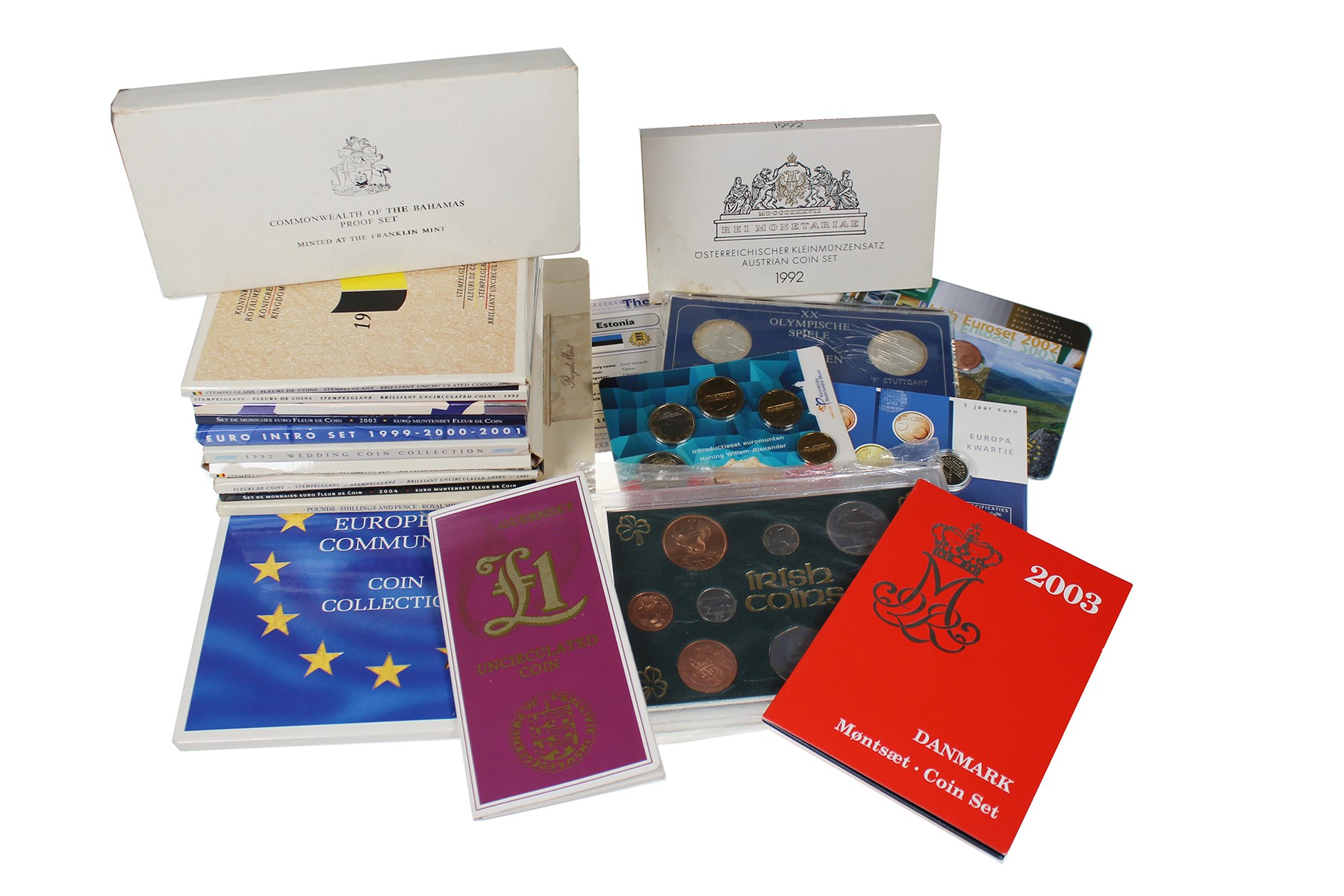 Doos met 20 stuks FDC- en proofsets uit diverse landen.