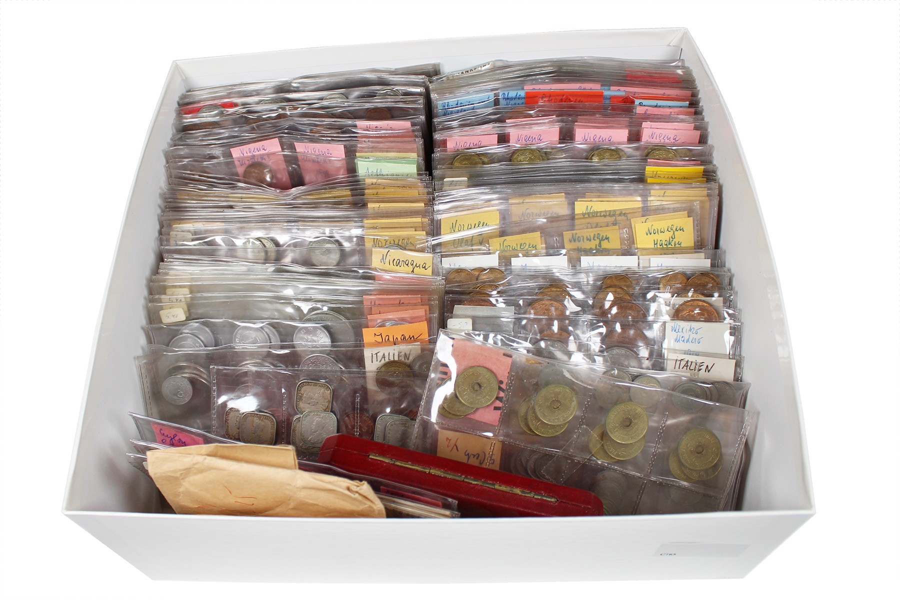 Doos met primitieve muntsets uit de vijftiger en zestiger jaren! Afkomstig from all over the world! Ca. 125 stuks.