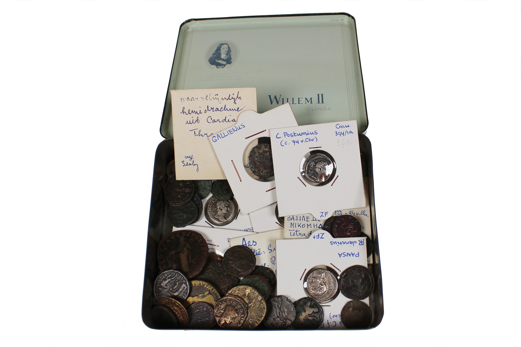 Leuk studielot met ca. 50 stuks Griekse en Romeinse munten in een matige kwaliteit, deels gedetermineerd en beschreven.