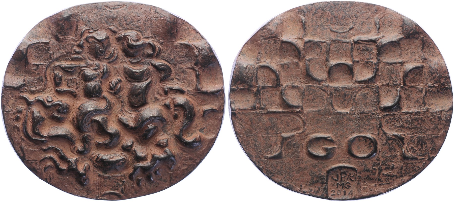 2014 GO. Twee geliefden op een wolk, maar bij nader inzien zitten op draak. De vleugels van de draak symboliseren het vrijkomen van pure energie: GO. Brons gepatineerd 85. Maria van Gerwen. Prachtig.