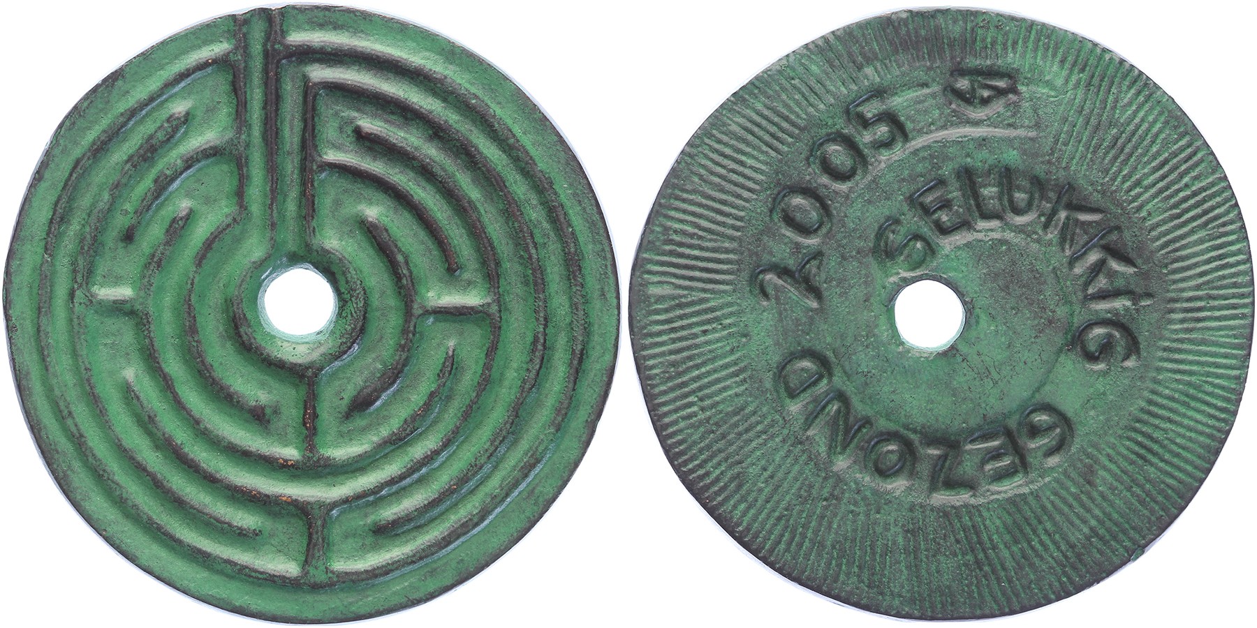 2005 Rond labyrint met gat / Gelukwensen voor het nieuwe jaar. Æ 45 gepatineerd. Oplage 11 stuks. Prachtig.