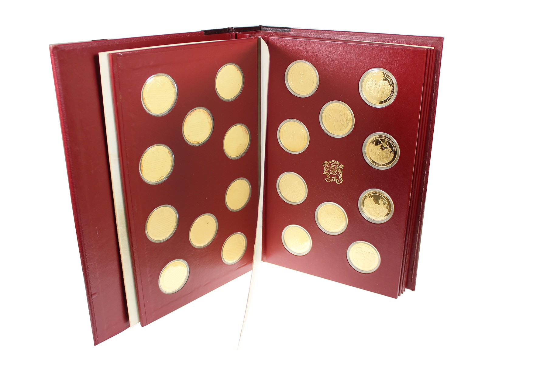 De ultieme bling bling-droom! Mooi album met maar liefst 50 stuks goud vergulde penningen met als thema ‘De geschiedenis Der Nederlanden in penningen’! Uiteraard compleet met certificaten van echtheid.