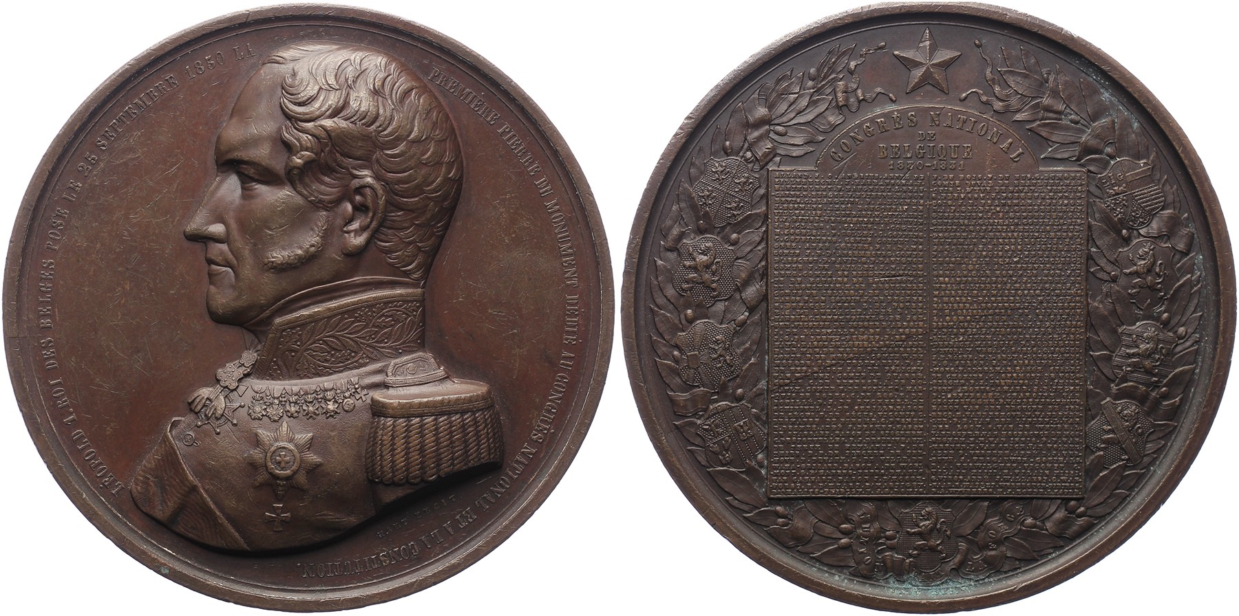 1850 1e Steenlegging monument gewijd aan het Nationaal Congres en de grondwet. Buste Leopold I in uniform naar links. / Constitutionele tekst op rechthoek omgeven door provinciewapens.Æ 101. P. Hart. Zware jongen van maar liefst 407 gram! Fraai/zeer fraai.