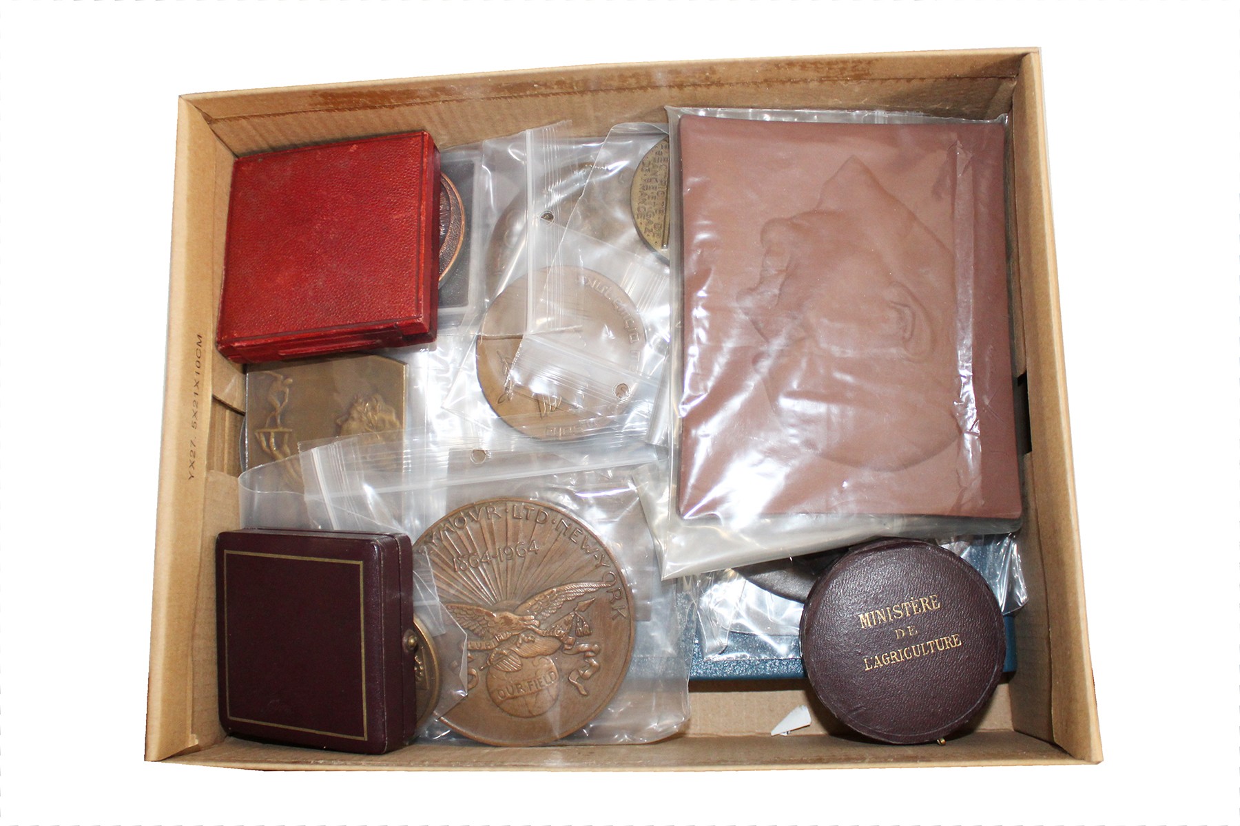 Groot lot (42) buitenlandse penningen diverse landen, w.o. Frankrijk – Art Déco, terracotta enz.
