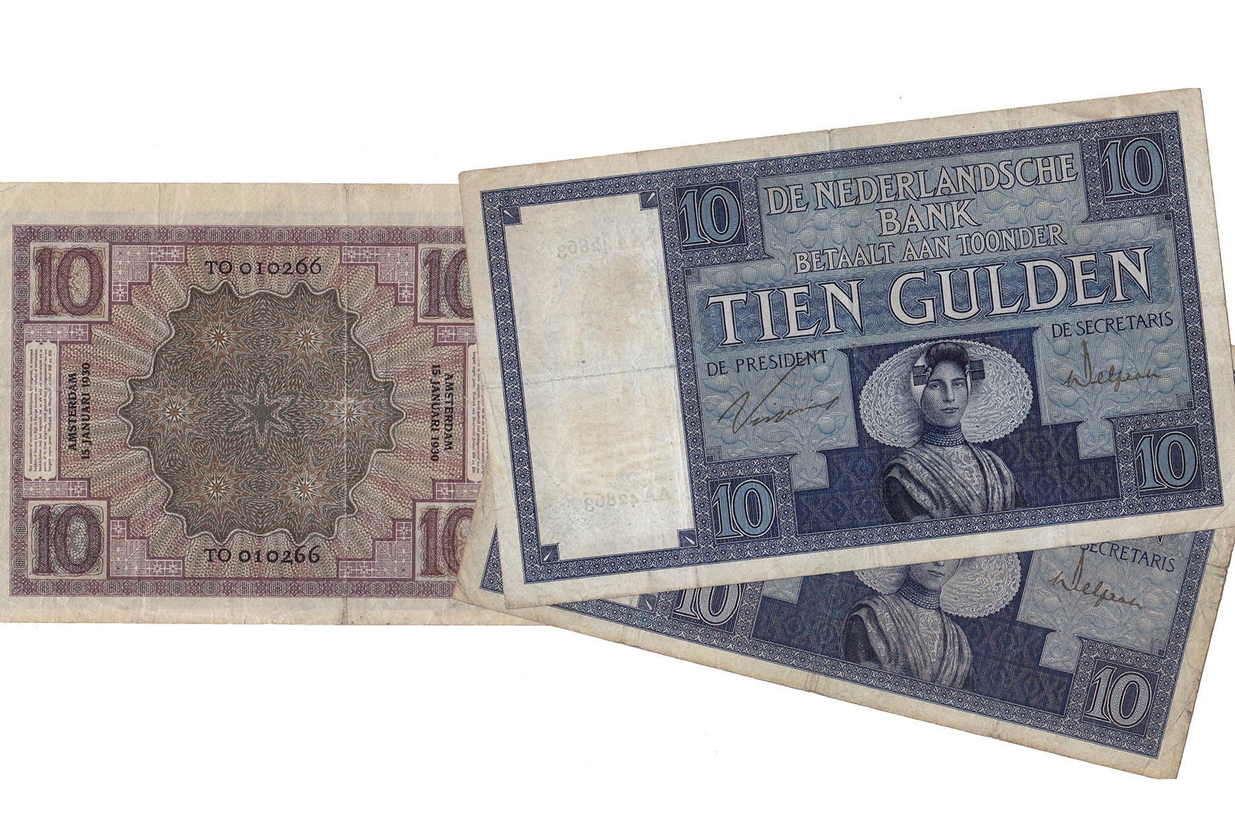 Lot (3) 10 Gulden 1924 Zeeuws Meisje. Mev. 39-1b; 39-2a; 39-2b. Circa fraai.