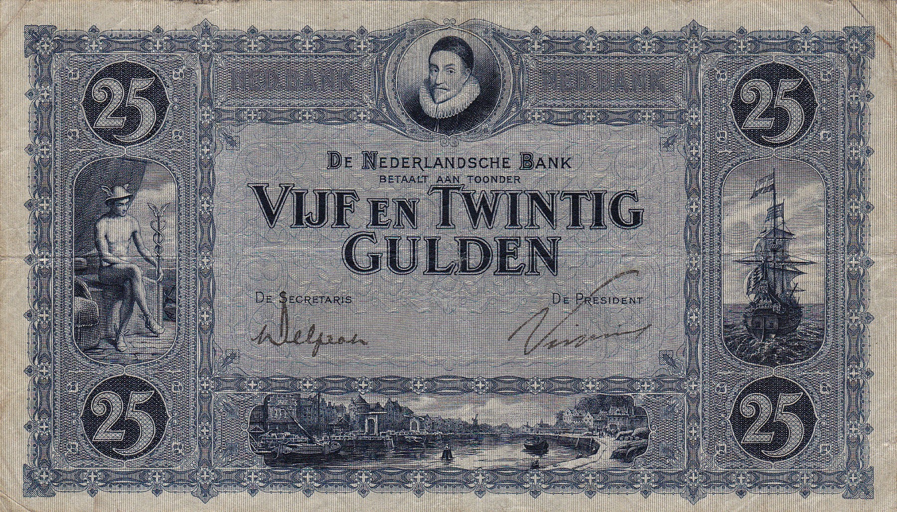 25 Gulden 1927 Willem van Oranje. Mev. 74-1; PL 59 [# HF 004800]. Zeer fraai.