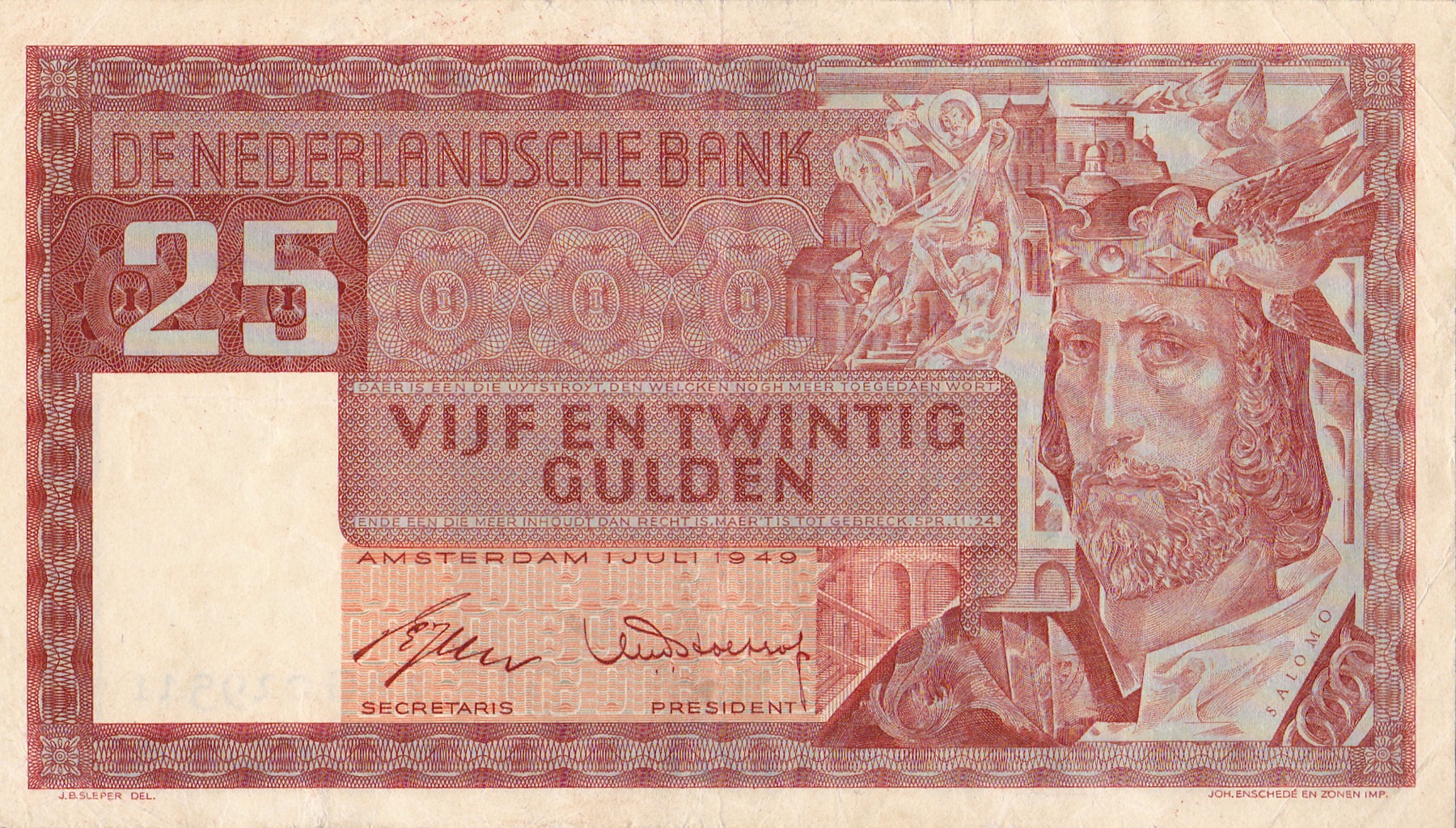 25 Gulden 1949 Salomo. Mev. 82-1; PL 67.a [# 2 AG 029541]. Vrijwel prachtig.