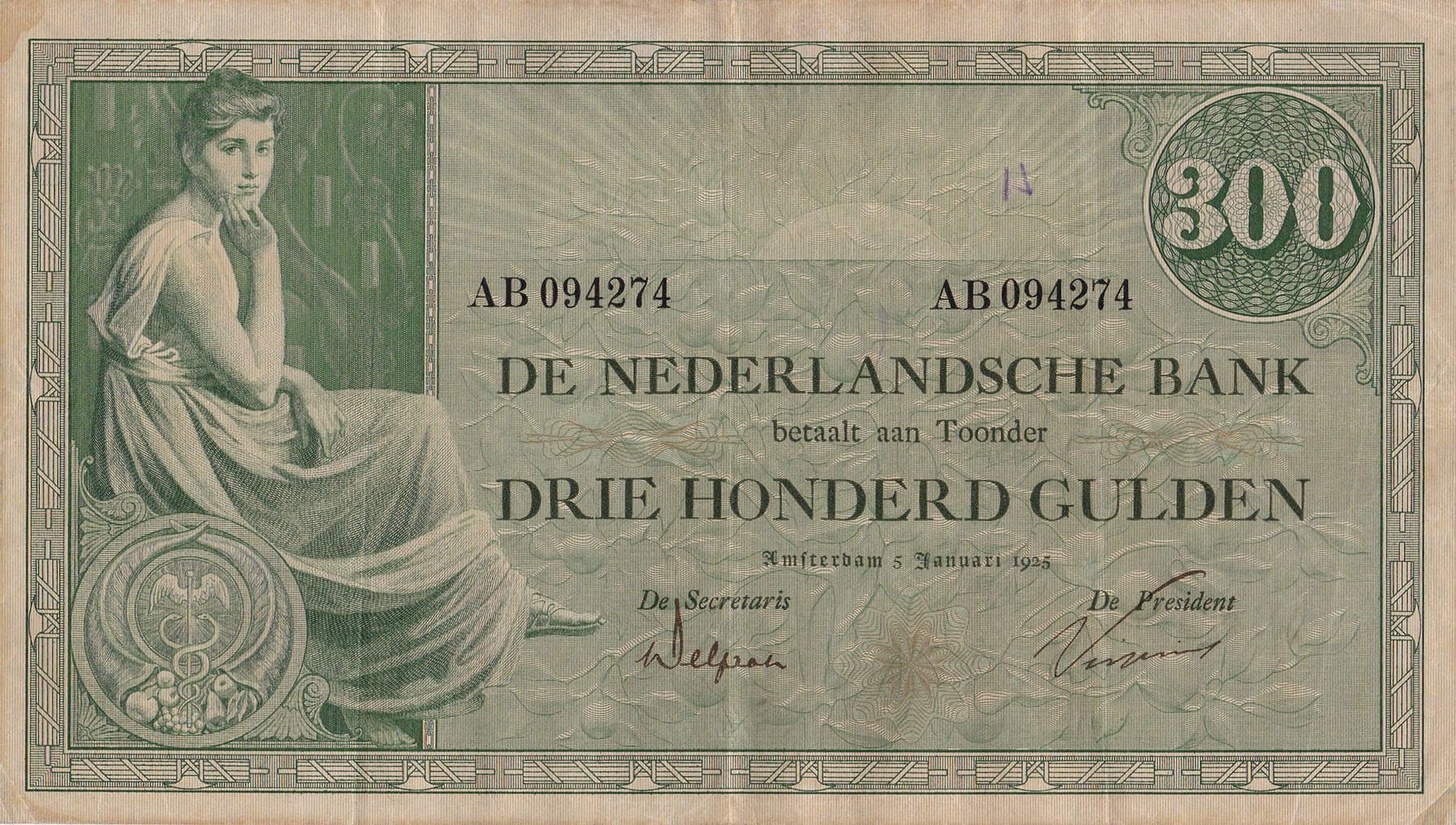 300 Gulden 1925 Grietje Seel. Mev. 138-2; PL 114.b2 [# AB 094274]. Kleine inktnotitie vz. Fraai / Zeer fraai.