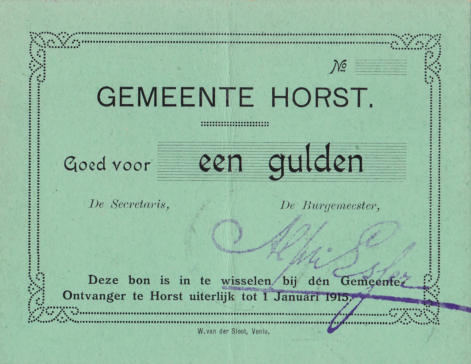 1 Gulden 1915. Verkooijen 17.1; PL 595.1. Alleen handtekening Esser gestempeld. Prachtig.
