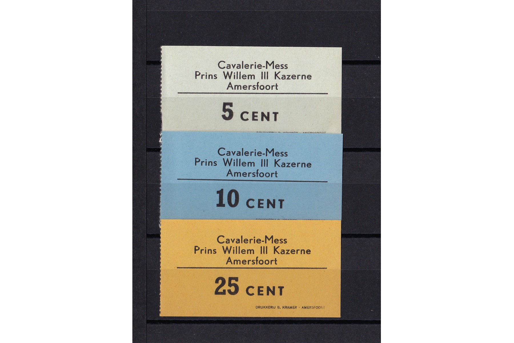Lot (3) Prins Willem III Kazerne, Cavalerie-Mess. 5-10-25 Cent z.j. PL 1800.1-1800.3. UNC.