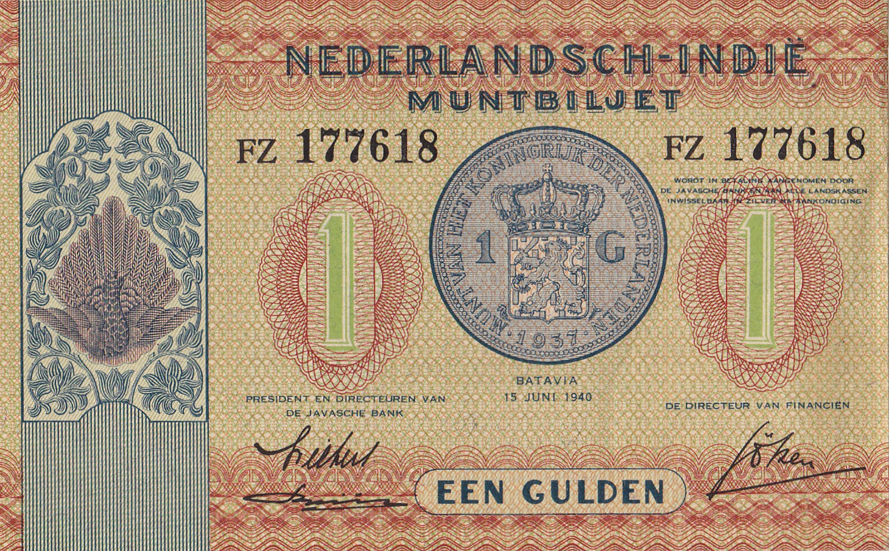 1 Gulden 1940 Muntbiljet Borubudur. Pick 108; PL NI-24.1a [# FZ 177618]. UNC.