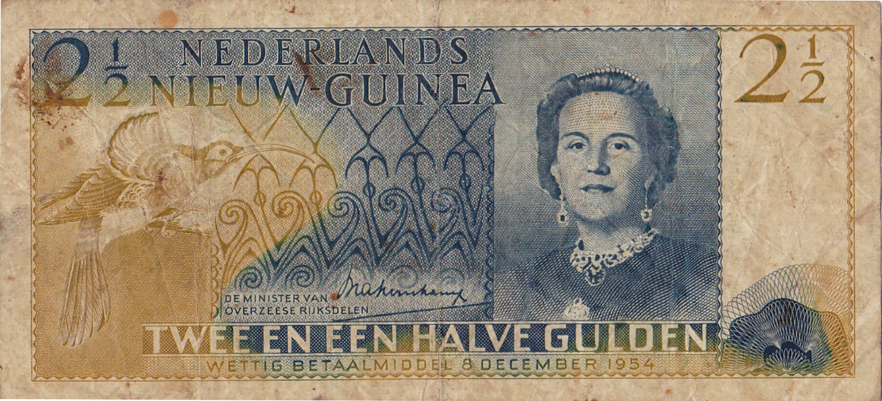 2½ Gulden 1954 Juliana. Pick 12; PL NG-2.2a [# EU 016843]. Zeer goed.