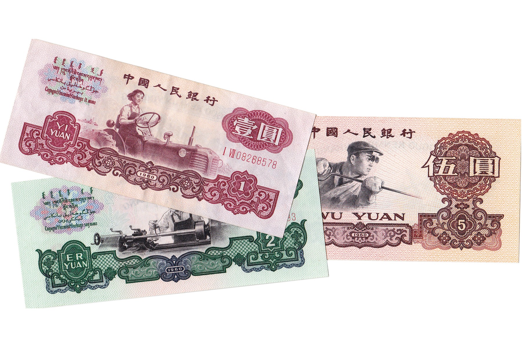 Lot (3) 1, 2 en 5 Yuan 1960. Pick 874c, 875a, 876b. VF / UNC.