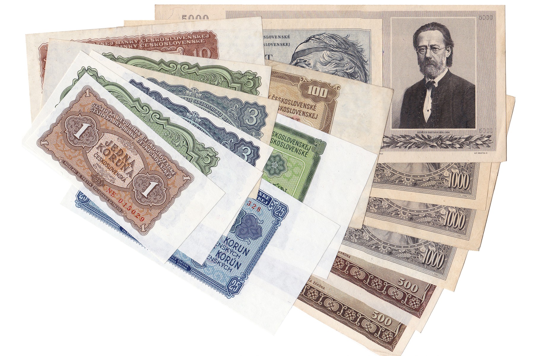Lot (16) verschillende denominaties uit de periode 1945 t/m 1958, o.a. 5000 Korun 1-11-1945. Pick 73a+s, 74a (2), 74s, 75a, 78b, 80b, 81, 82, 83b, 84b, 85b, 86 b, 87a. VF and better.