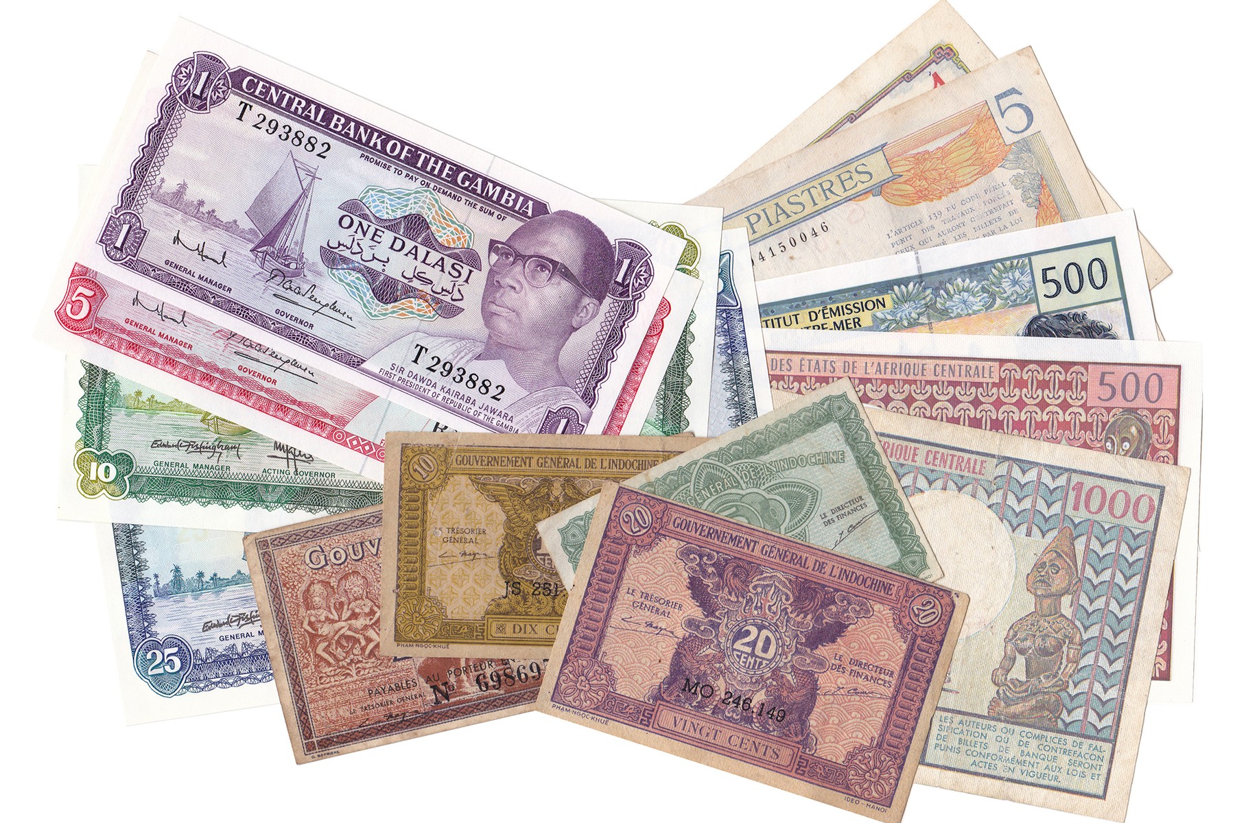Lot (13) verschillende denominaties van French Indo-China, Gabon en Gambia. Pick 1e, 55c, 85d, 88a, 89a, 90, 92, 2b, 3d, 9a, 10b, 11c, 49. VF and better.