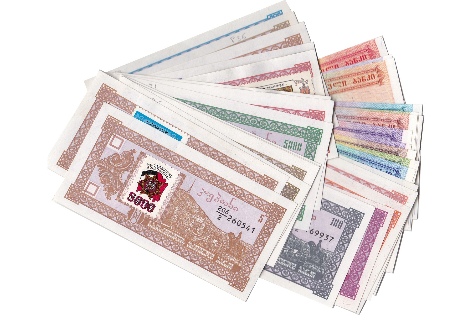 Lot (32) groot aantal denominaties Georgia periode 1993-1994. Vrijwel complete serie. Pick 25 t/m 52 (m.u.v. 28, 29 en 32). Almost UNC.