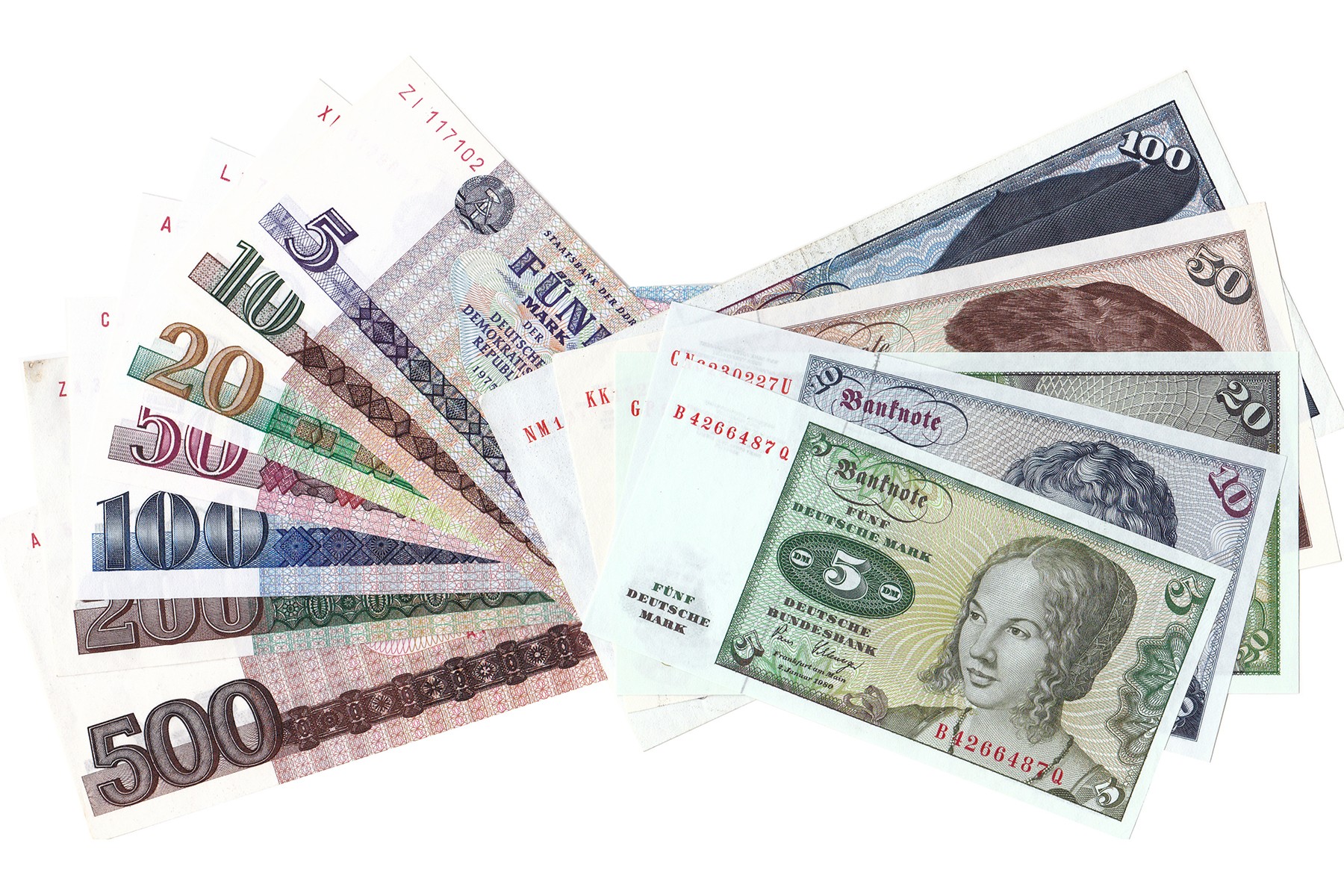 Lot (5) 5 Deutsche Mark t/m 100 Deutsche Mark Deutsche Bundesbank 1970-1980 issue. Pick 30b, 31d, 32d, 33d, P 34d. Toegevoegd: serie 5 Mark t/m 500 Mark Staatsbank der DDR (7). Pick 27a t/m 33a. Almost UNC.