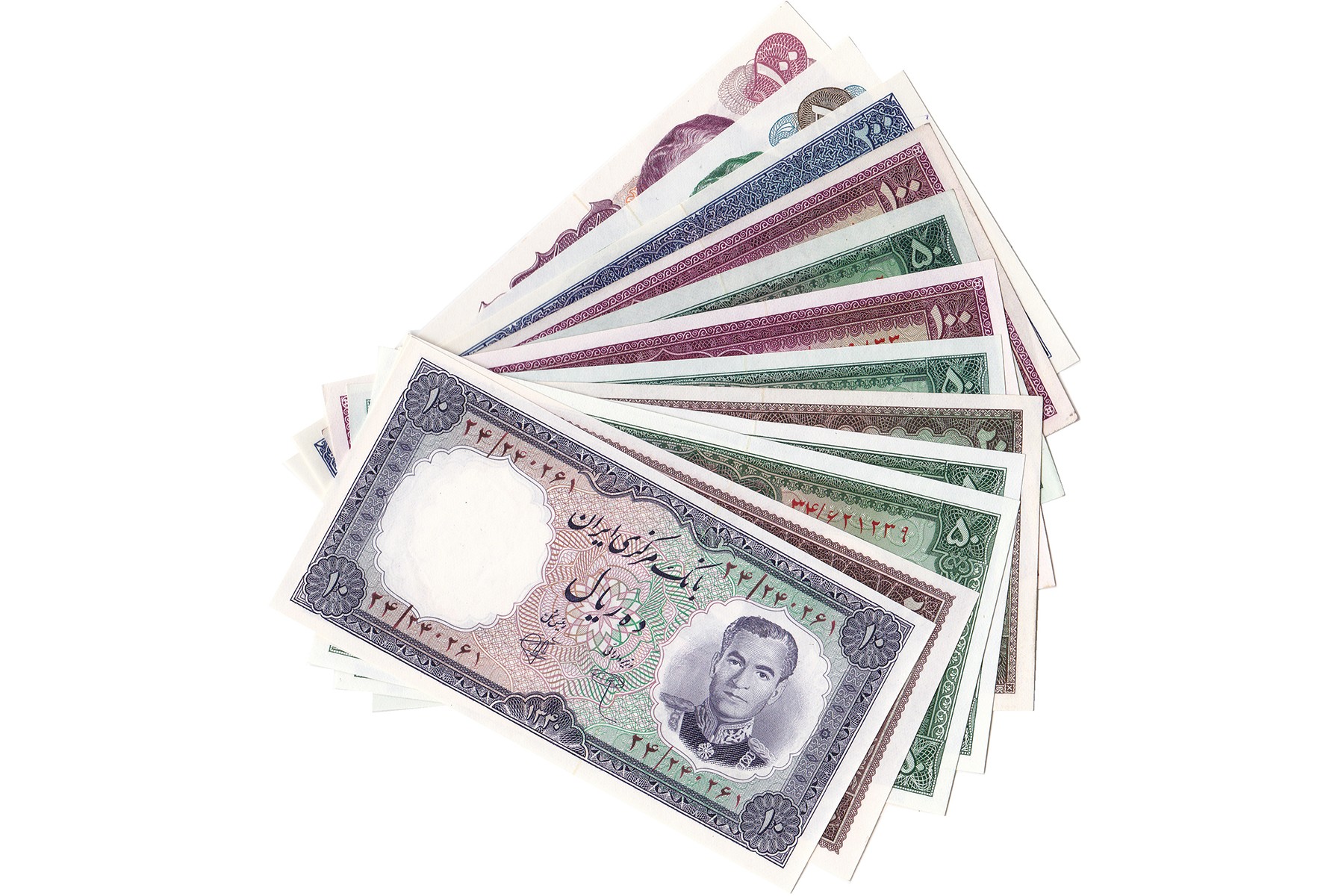 Lot (13) verschillende denominaties Iran periode 1961 t/m 1971. Pick 71, 72, 76, 78, 79, 84 t/m 86, 90 t/m 92, 97, 98. Almost UNC.