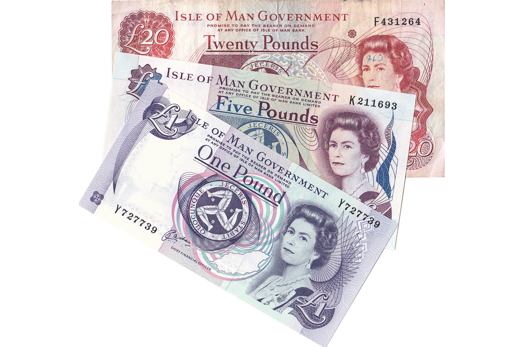 Lot (3) 1, 5 en 20 Pounds 1983 ND issue. Pick 40b, 41b, 43b. VF / Almost UNC.