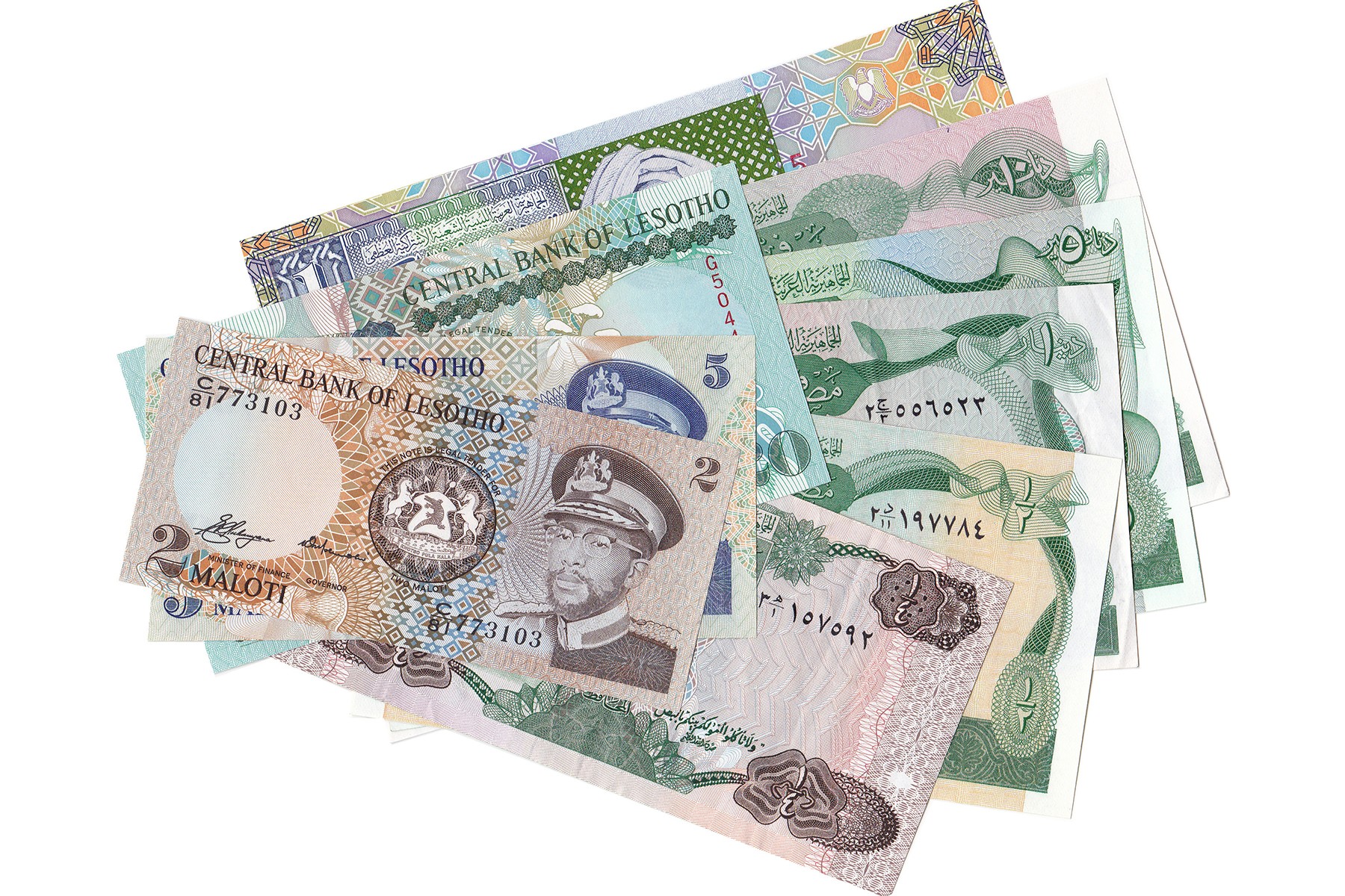 Lot (9) verschillende denominaties van Lesotho en Libya. Pick 4a, 5, 16b; 43 t/m 46, 64. Almost UNC.