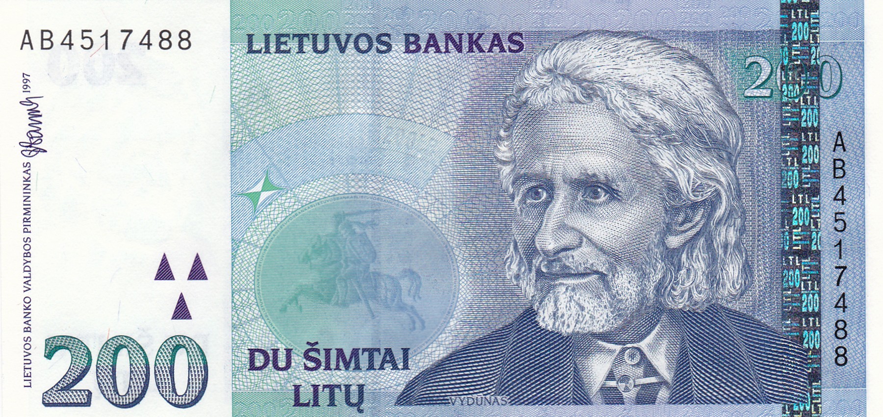 200 Litu 1997. Pick 63 [# AB4517488]. Almost UNC.