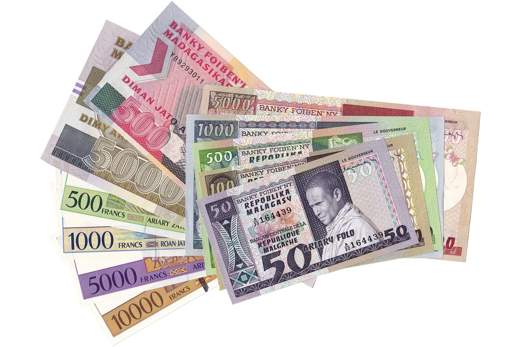 Lot (11) complete serie 1974 ND issue Madagascar Democratic Republic, 50 Francs t/m 5000 Francs. Pick 62 t/m 66. Toegevoegd: complete serie 1994-1995 issue. Pick 74 t/m 79. Almost UNC.