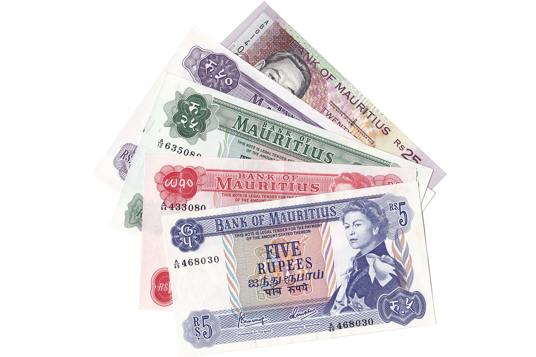 Lot (5) complete serie 1967 ND issue Bank of Mauritius, 5 Rupees t/m 50 Rupees. Pick 30c, 31c, 32b, 33c, 49a. Almost UNC.