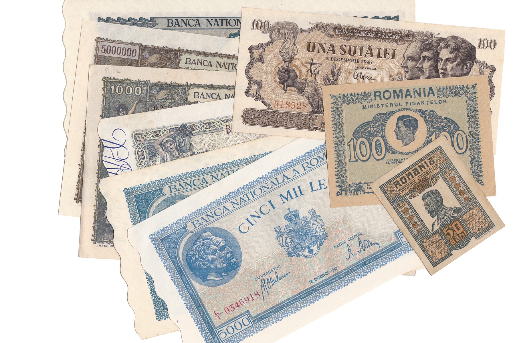 Lot (9) verschillende denominaties Romania periode 1917 t/m 1947 o.a. 5.000.000 Lei 25-1947.Pick 55, 56, 58, 52, 61, 60, 67, 78, 71. VF and better.