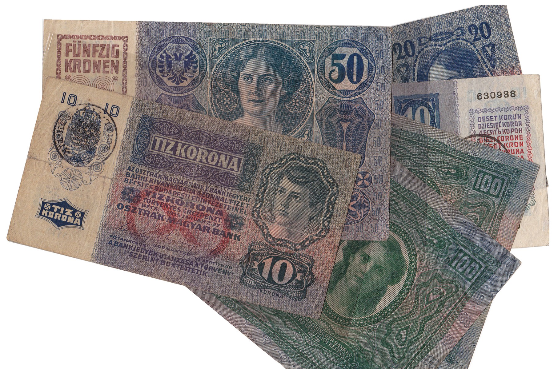 Lot (6) verschillende denominaties Romania / Austria periode 1919. Pick R2, R7, R9, R13, R15. Fine / VF